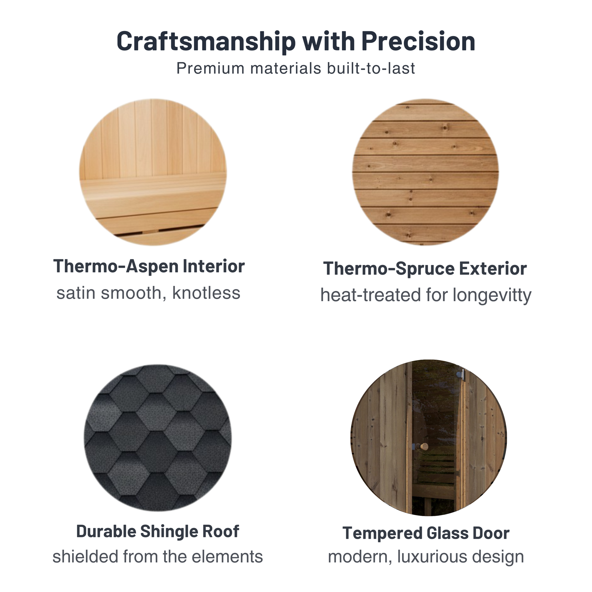 - Thermo-Spruce materials (lasts up to 2X longer than Cedar)