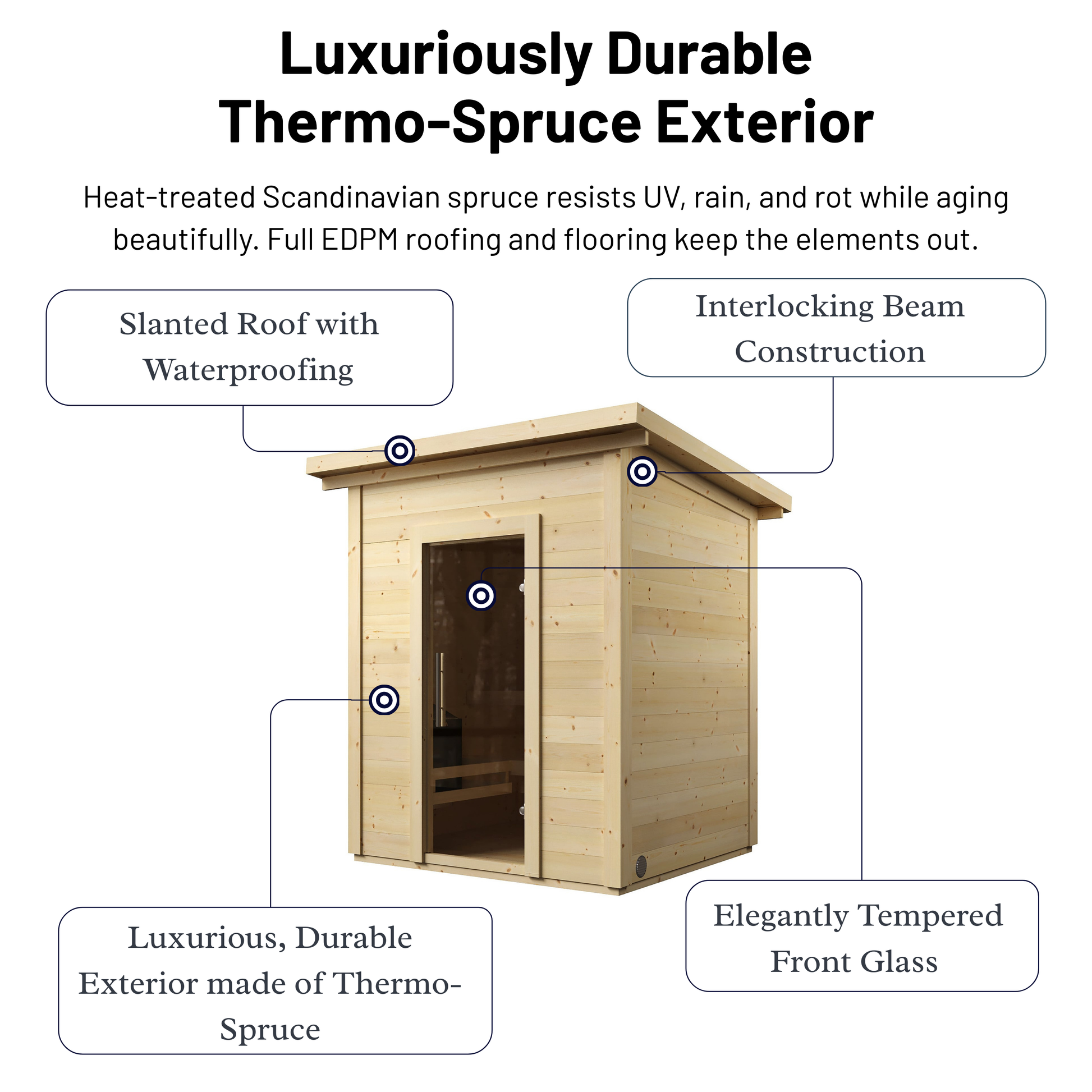 - Engineered for simple DIY sauna installation (2 persons, 2-days)Β